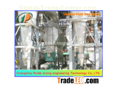 Fluidizing drier is also called as fluidized-bed. It consists of air filter , heater ,fluidized-bed main machine, feeder , cyclone separator , cloth bag duster ,high-pressure centrifuge fan and operation table. Because the properties of raw materials exist difference, when equip the dust removing equipment, it should consider the practical need. It can select cyclone separator and cloth bag duster at the same time or one of them. In general speaking, it needs to select cyclone